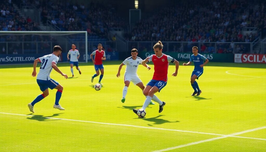 5. Гибридные схемы 3‑4‑3 / 4‑3‑3 с трансформацией в зависимости от фазы. Наиболее перспективный, но и наиболее сложный в внедрении подход. Требует умных универсалов и продвинутой тактической подготовки. Риск — если часть игроков не понимает триггеры смены структуры, возникают «дыры» между линиями.